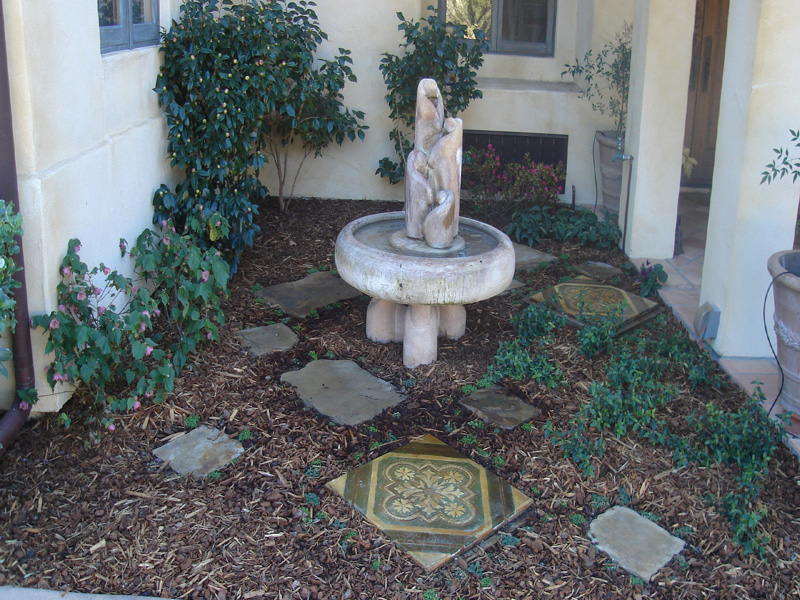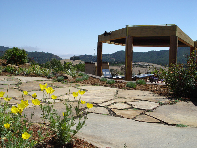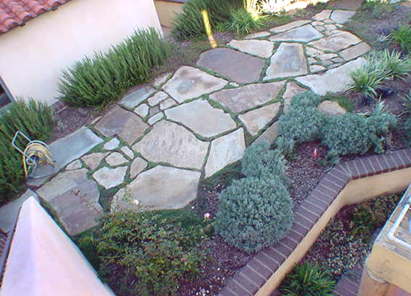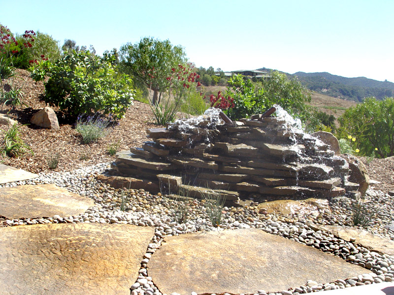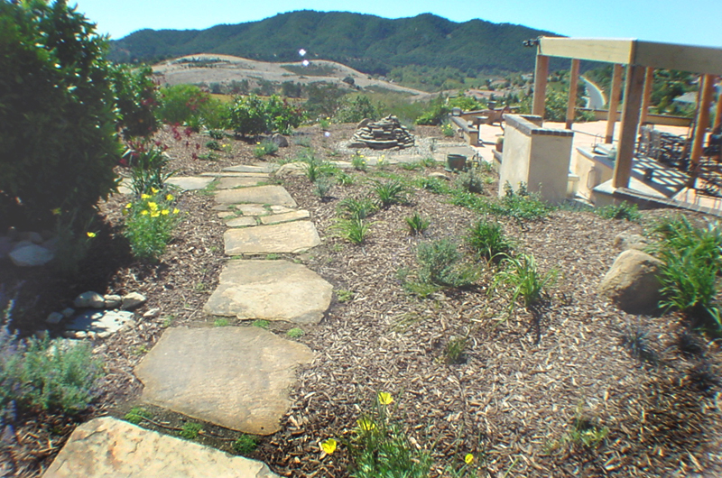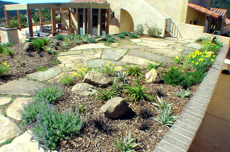 All Seasons designed, installed and currently maintains this drought tolerant landscape. Thousands of pounds of boulders and Oklahoma flagstone were used to compliment the color of the house.