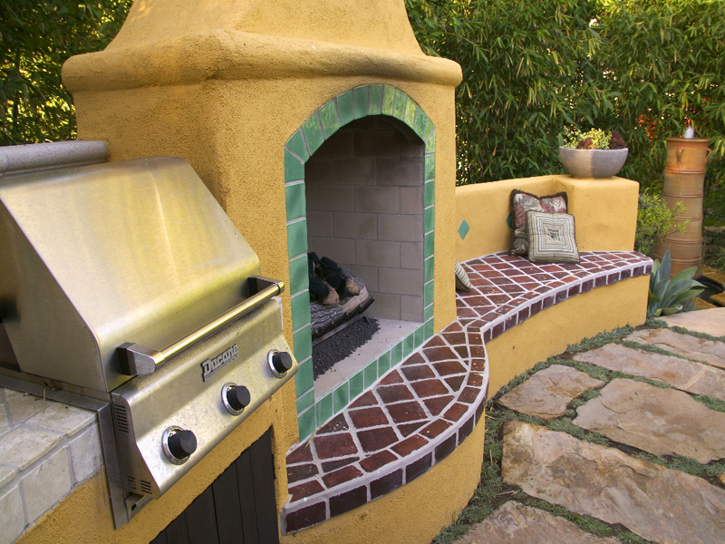 This project was designed by Jeffrey Gordon Smith Landscape Architect. This landscape features an outdoor fireplace, seating area, multiple water features, decorative art, and fiber optic lighting. This landscape was installed by Terra Nova, Day Star Enterprises, in conjunction with All Seasons G & L